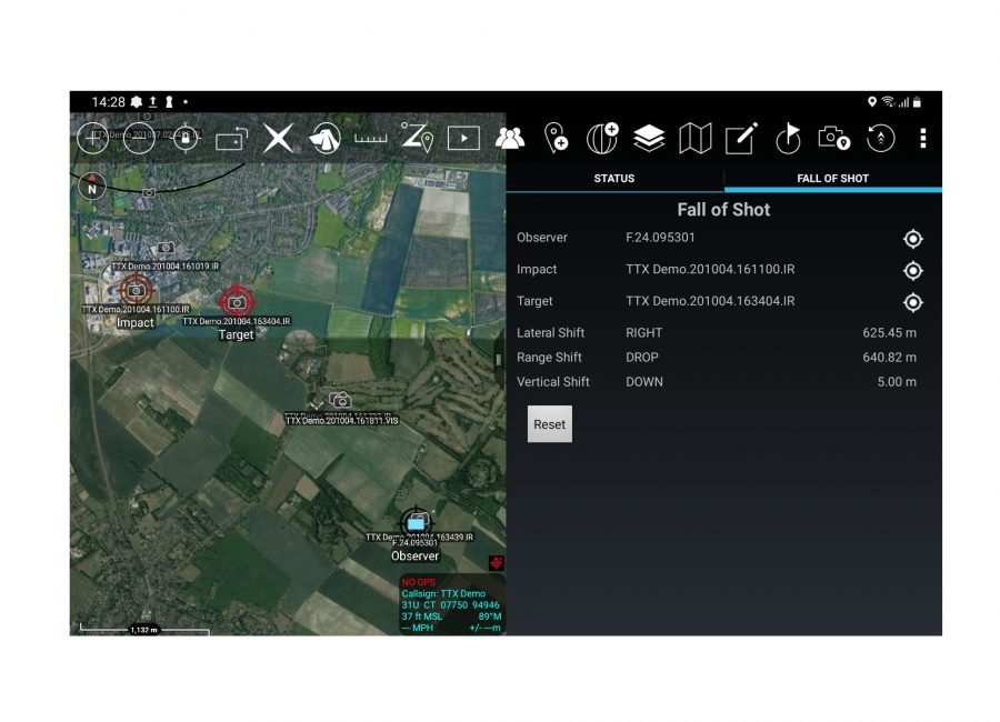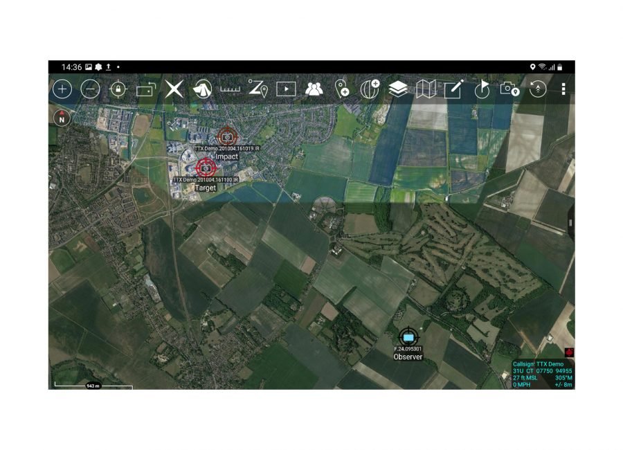 Once a target is acquired it can be sent to ATAK via the cable where it is displayed along with any other operational data in the mapping system.